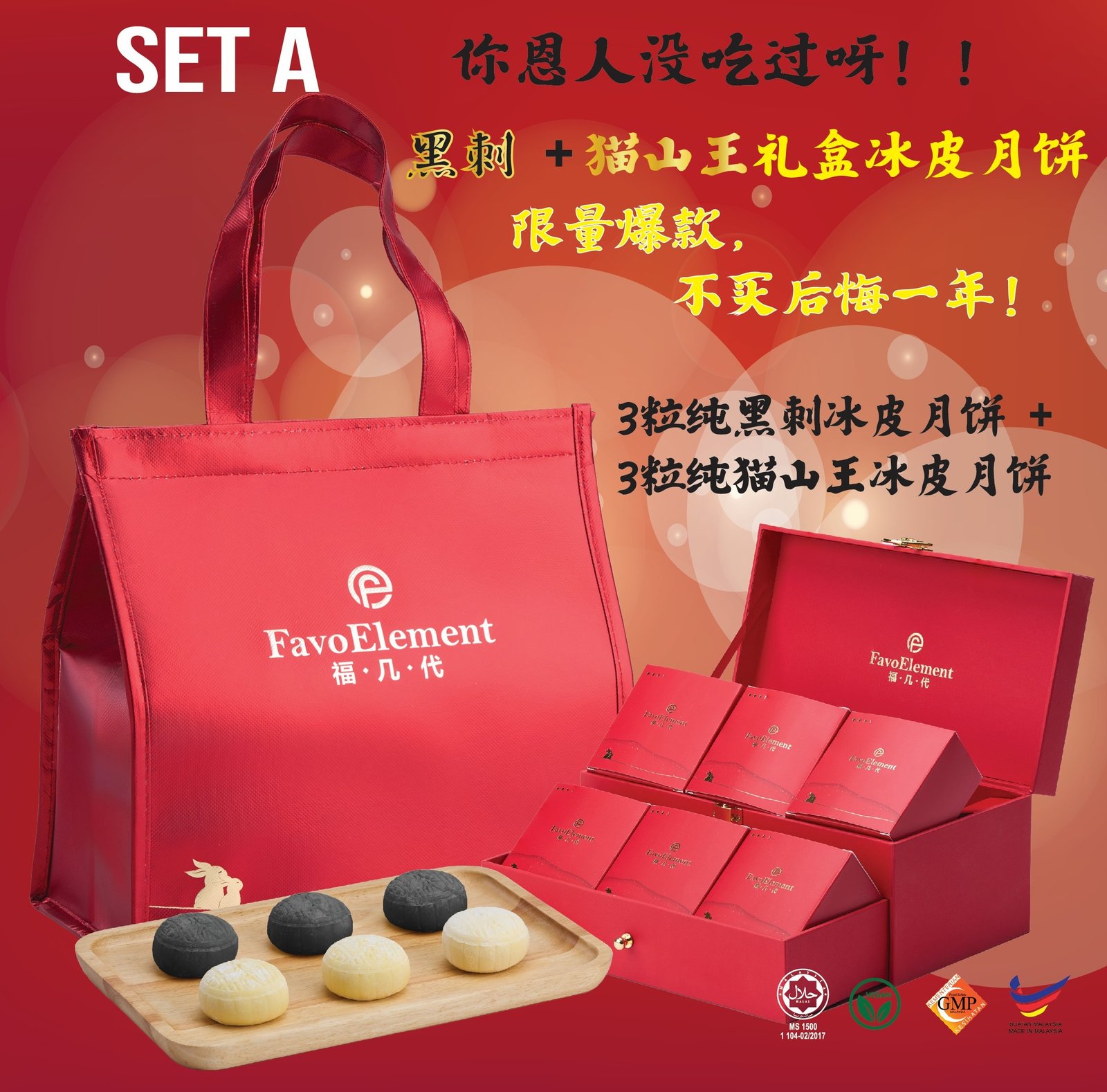 Set A (黑刺+猫山王尊享版礼盒) 3粒 黑刺冰皮 + 3粒 纯猫山王冰皮月饼 (Out Of Stock)